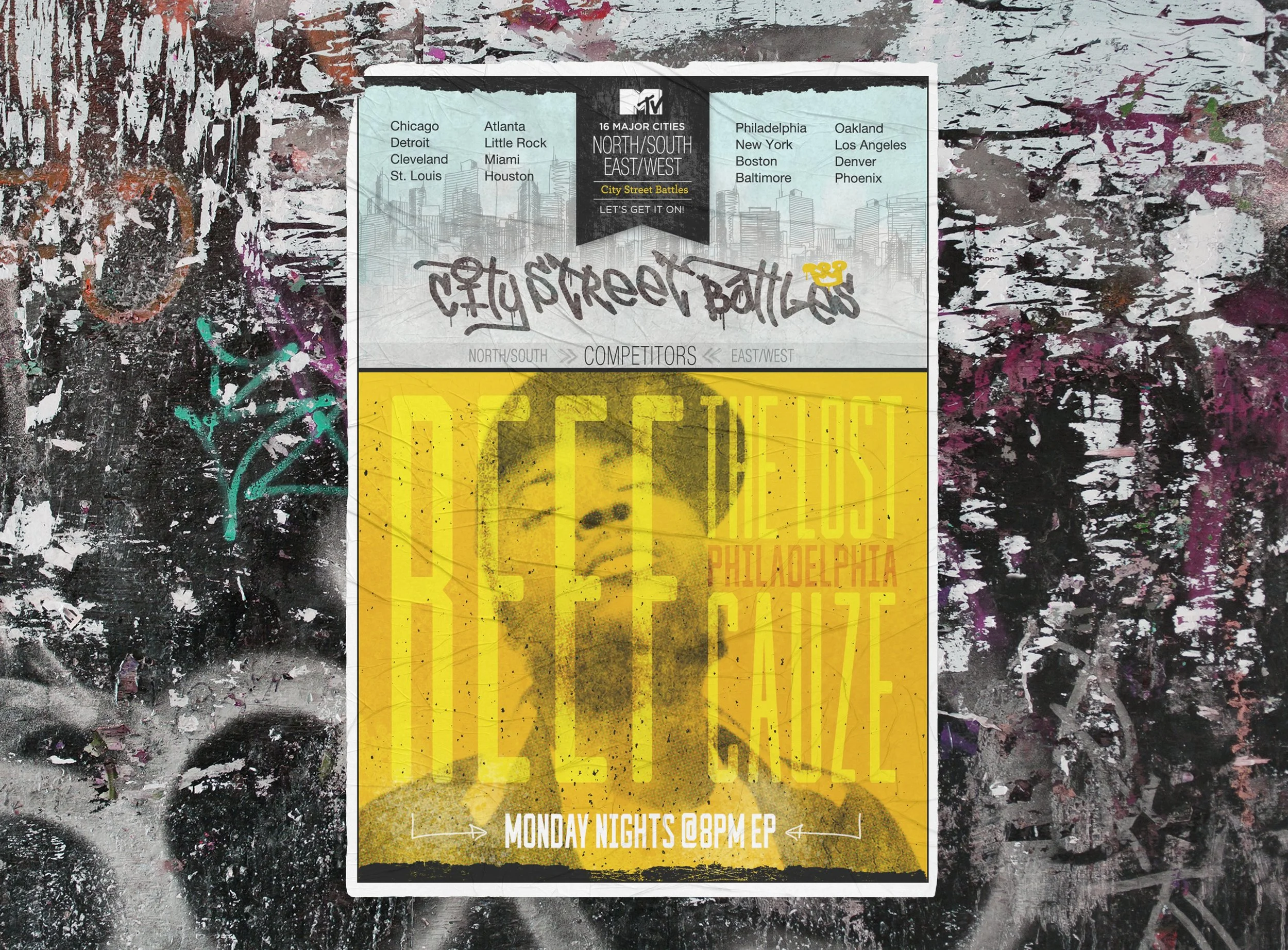A battle rap competition was developed into a reality show concept. I designed and developed a full branding and marketing campaign to help promote and execute the show pitch. The idea was not pushed hard enough to get it off the ground, but the strong gritty visuals (logo, website, posters, billboard, swag, and sizzle reel) still remain relevant to this day.